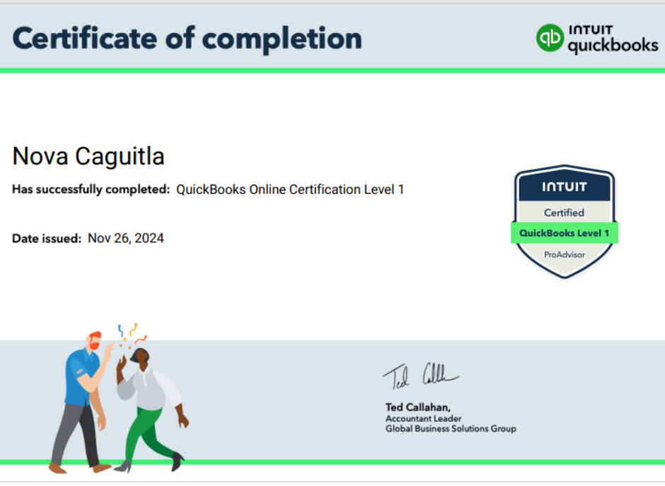 QuickBooks Online Certification (Level 1) – ProAdvisor Academy (Nov 2024)
