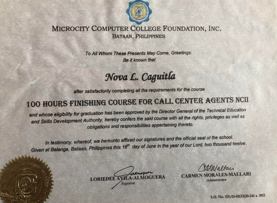 Call Center NCII Training (TESDA) – 100 Hours Finishing Course for Call Center Agents (2012)
