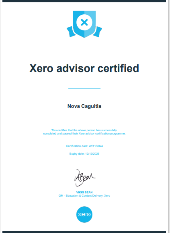 Xero Advisor Certified – Xero (Nov 2024, valid until Dec 2025)